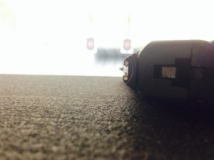 Close-up of a plug on textured surface.